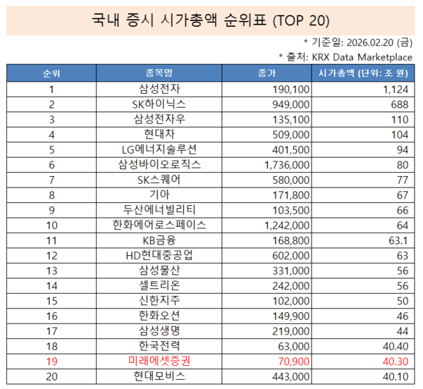 미래에셋증권이 국내 증시에서 시가총액 기준으로 상위 20위 안에 들면서 증권업계의 판도를 흔들고 있다. 최근 시가총액이 40조 원을 넘어섰고, 전 거래일에는 18위를 기록하며 주목받고 있다. 이는 단순한 일시적 상승이 아닌 업계 전체에 미치는 상징적 사건으로 평가된다. 금융권에서는 현재 KB금융, 신한지주, 삼성생명만이 미래에셋증권을 앞서고 있는 상황이다.